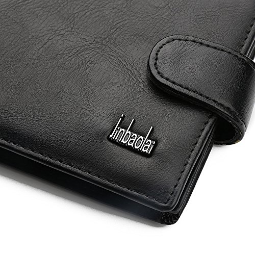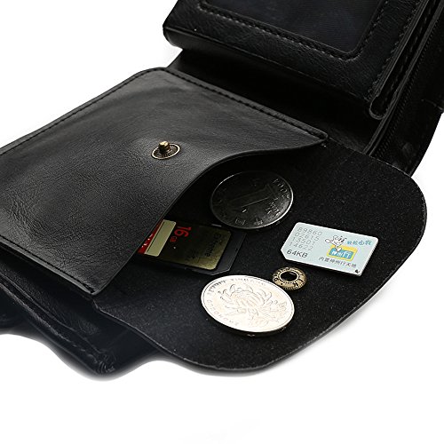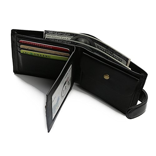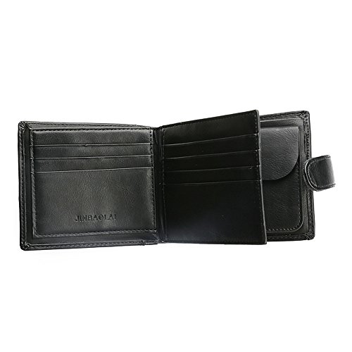 J.Market Mens Leather Bifold Wallets Soft Leather Billfold Wallet with Tab (Black)