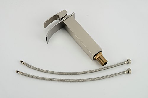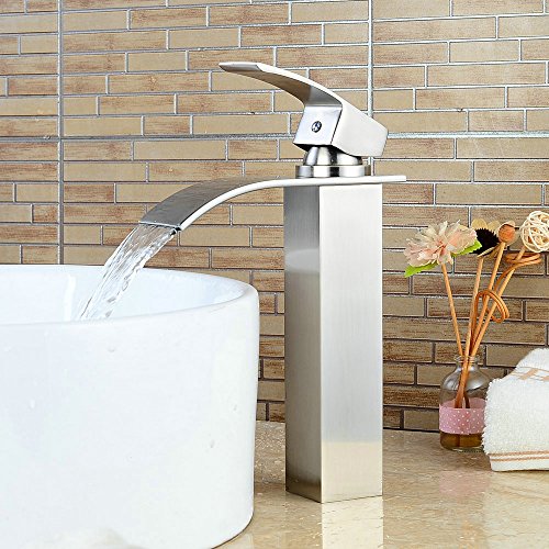 Beelee Brushed Nickel Single Handle Basin Faucet Mixer Tap Waterfall Vanity Sink Faucet For Bathroom Bath Basin for Vessel Sinks