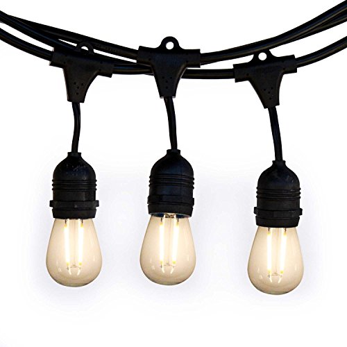 Holiday Lighting Outlet Weatherproof Commercial Grade LED Patio Light Strings, 15 Hanging Sockets, 16 - 2 Watt LED Filament Dimmable Bulbs included, 48 Foot String, With 3 Foot Socket Spacing