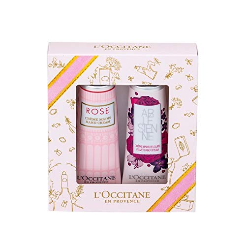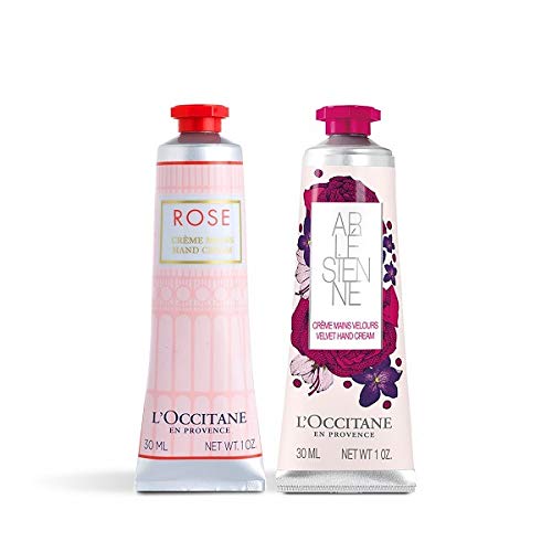 7つの花果実(*)が優美に香るリボンアルルと、みずみずしいプロヴァンスの朝摘みローズの2種類の香りのハンドクリームセット。その日の気分で香りを楽しんで。