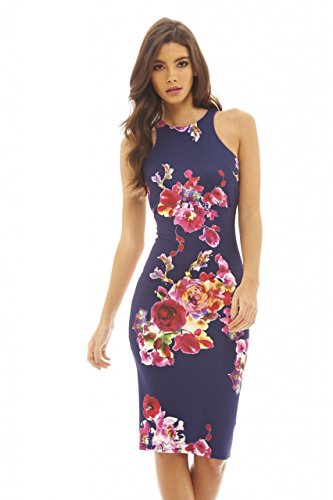 Perfect for all occasions is this bold floral printed dress! This navy bodycon style will hug your curves while the high neck and midi length will keep your look modest and feminine. Pair with minimal accessories and you'll have an outfit in an instant.Feature