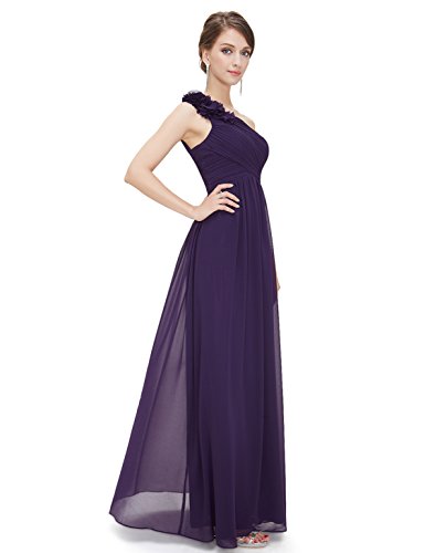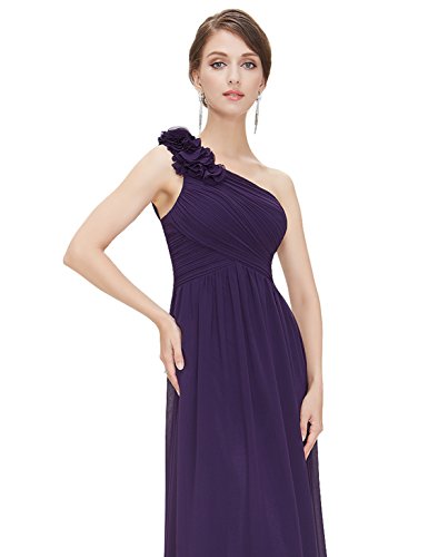 One shoulder long party dress. Padded enough for "no bra" option. Stylish hand-made flower decorates the single shoulder. Unique ruched bust creates an elegant silhouette. Simple and fashion design. Concealed zipper up the back. Lining, no stretchFeature