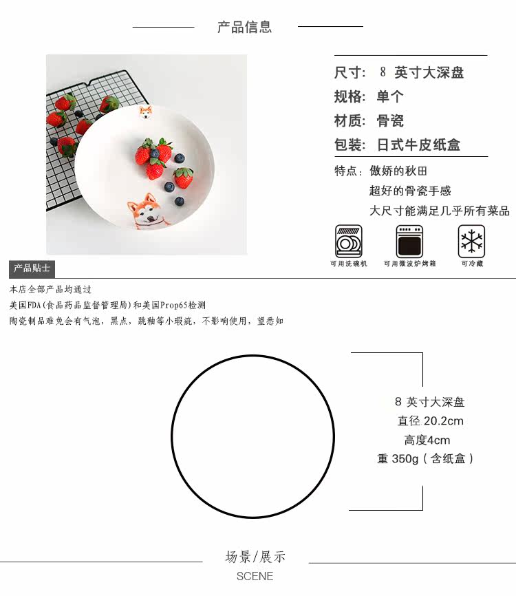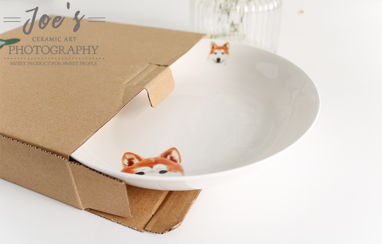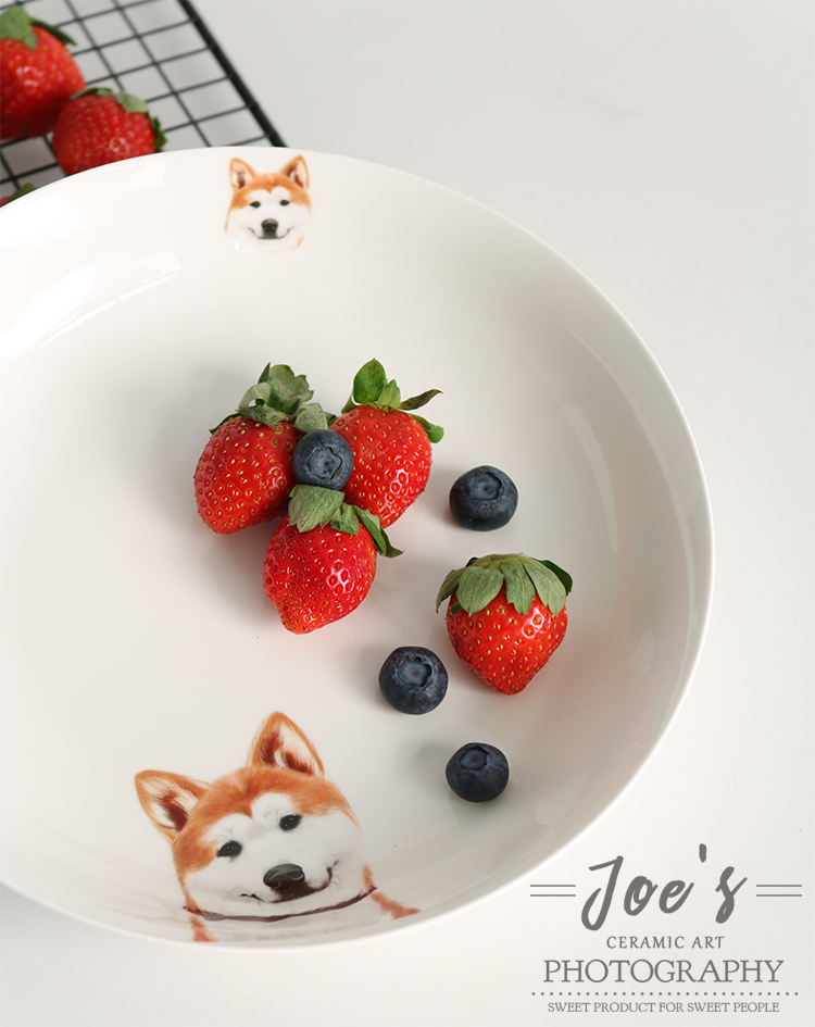 写实宠物餐具秋田犬陶瓷骨瓷碗菜盘盘子水果盘鱼盘汤盘微波炉餐具