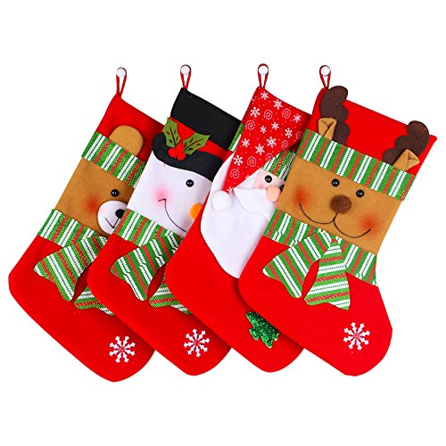 Fuyus 4-Pack 15" Cute Christmas Stockings for Kids,Santa Claus,Snowman,Elk and Bear