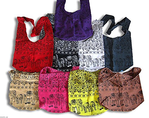 -. Title : Pack 9 Shoulder Bag Thai Cotton Elephant Sling Yaam Cross Body Hippie Bohemian Style