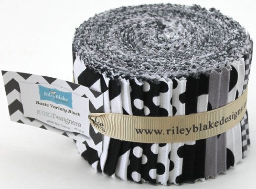 Riley Blake BASICS VARIETY BLACK Rolie Polie 24 2.5 inch Jelly Roll Strips Quilt Fabric RP-110-24
