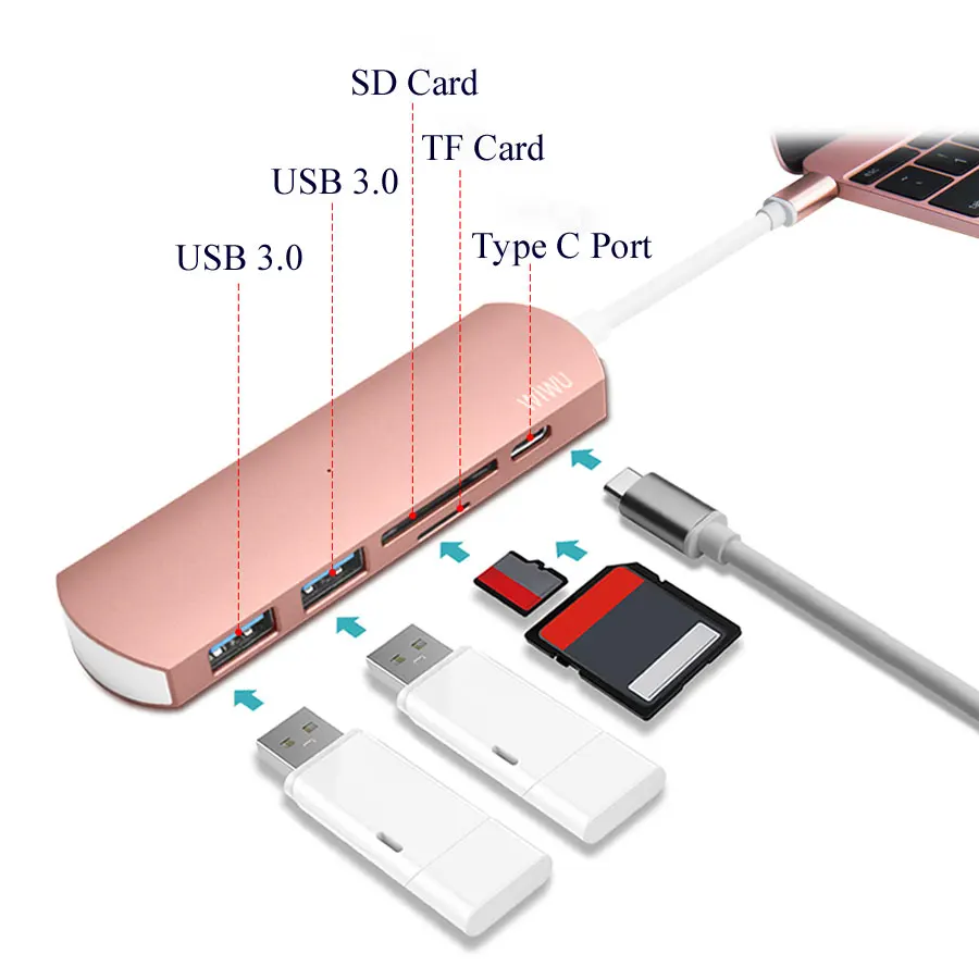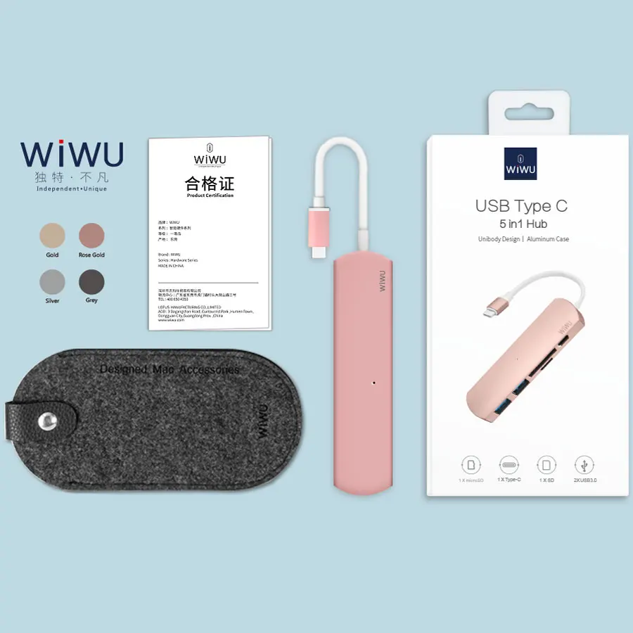 WIWU USB 3.0 Hub for Macbook Pro Type C Hubs 5 in 1 Multi-Port Adapter USB-C Charging Port for MacBook 12 Thunderbolt USB-C Hub
