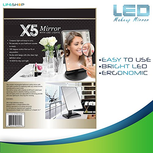 Built-in dimmable LED lighted allow you to do your make-up in the dark or poorly lit areas