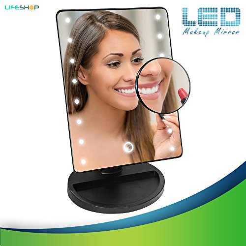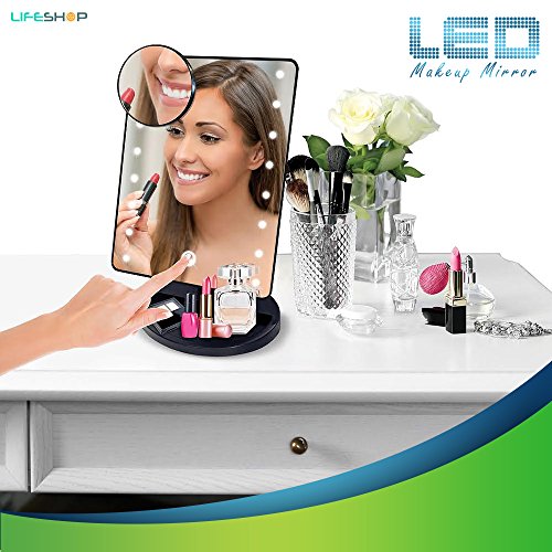 LifeShop Touch Screen Bright Vanity Table Top Makeup Mirror with LED Lights [Batteries Not Included]