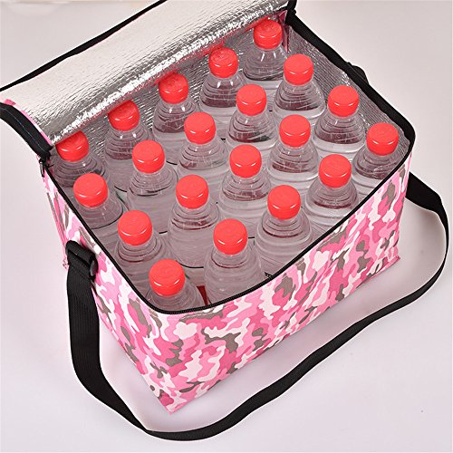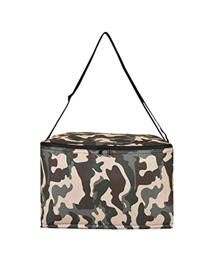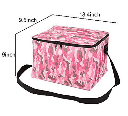 - Material:Oxford Cloth,Aluminum film lining.Size:13.4 x 9.5 x 9 inch.Fashion Camouflage,Zip Closure,Adjustable Shoulder Strap.