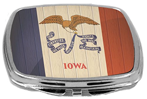 Rikki Knight Compact Mirror on Distressed Wood Design, Iowa Flag, 3 Ounce