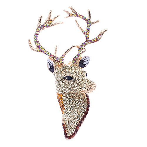 YELLOW RHINESTONE CRYSTAL DEER HEAD BROOCH PINS,CHRISTMAS DEER JEWELRY FA3181