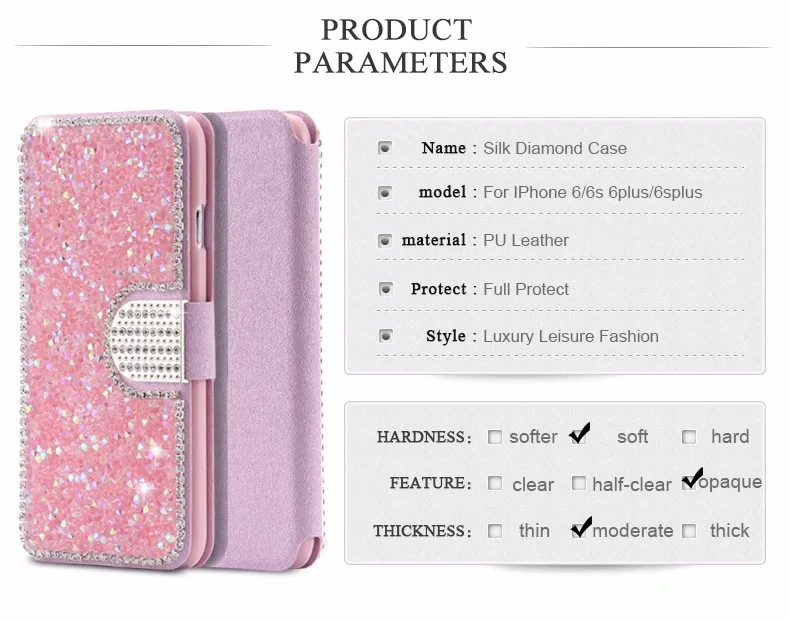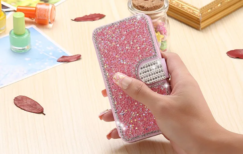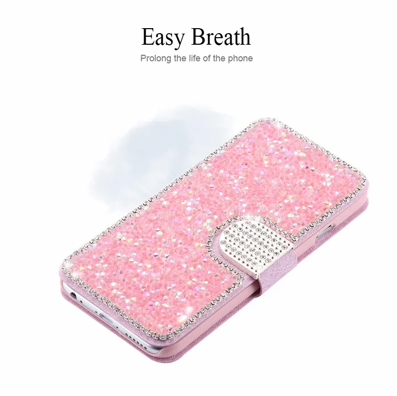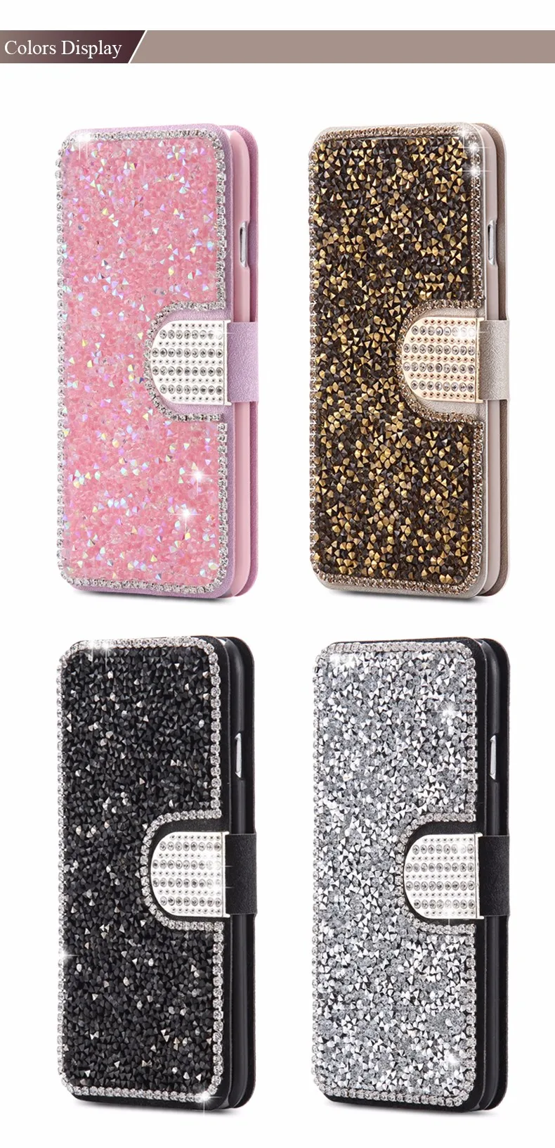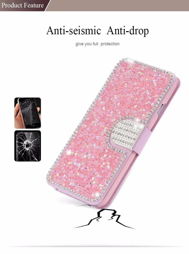 Feature 2:Shinny Diamond Phone + Card Slots + Wallet Pouch Bag