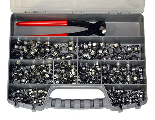 Oetiker Clamp Assortment Case, Oetiker Stepless Ear Clamps, Single Ear Hose Clamps (400 Pack (11/32" - 11/16"), With Pincers)