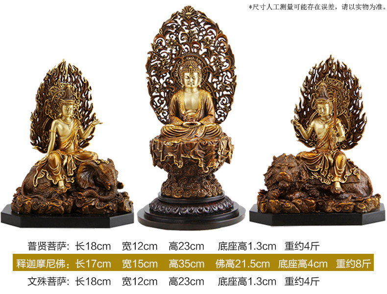 尺寸: 文殊 长18cm 宽12cm 高23cm 底高1.3cm     普贤 长18cm 宽12cm 高23cm 底高1.3cm     释迦 长17cm 宽15cm 高35cm 底高4cm