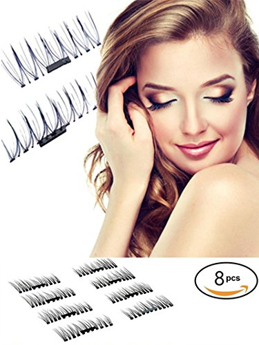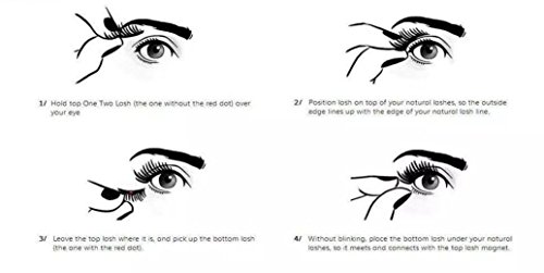 ♡Easy to use: Put one lashes on top of your edged natural lashes, then put the other lashes on bottom of your natural lashes so that two lashes will attract each other, You can adjust the position according to your need. Magnetic False Eyelashes takes you seconds to apply and saving you time.