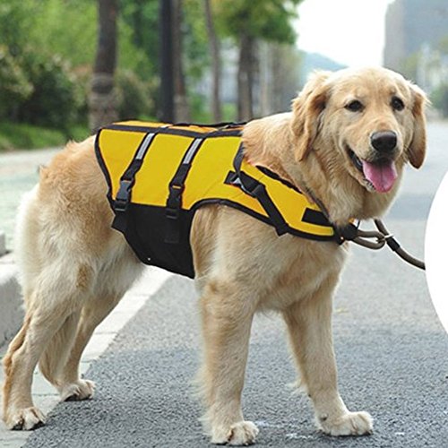 -. Binding : Misc. -. Brand : YK -. Color : yellow,pink,blue -. Feature : Quality materials, straps and fastening buckles / Mesh underbelly to allow for quick drying and proper drainage / A high quality loop to fasten a leash to while walking the dog / The durable rescue handle makes it easy to help dogs out of the water in the event of an emergency. Leash ring allows you to safely control your dog / Great for a day on the boat or beach, and in the pool or lake -. Label : YK -. Manufacturer : YK -. PackageQuantity : 1 -. ProductGroup : Pet Products -. ProductTypeName : PET_SUPPLIES -. Publisher : YK -. Studio : YK -. Title : YK Adjustable Dog Life Jacket Easy-Fit Pet Saver Life Jacket Dog Life Preserver Dog Life Vest
