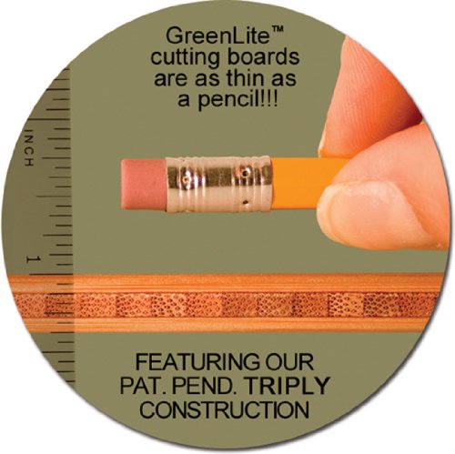 CRAFTSMANSHIP & FUNCTIONALITY: The Medium GreenLite board is 100% Bamboo & measures 13 1/2 x 9 x 3/8 inches; This bamboo cutting & serving board works for most food prep jobs or as serving platter when entertaining; Dishwasher Safe! This bamboo board is engineered to withstand high temperature cleaning in the dishwasher. Safe for use with all knives; light weight & durable bamboo boards have an integrated handle for easy use and storage