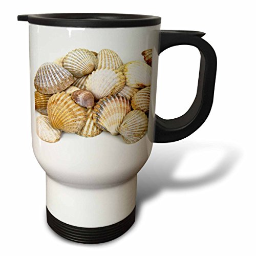 3dRose Sea Shells by The Sea Shore Summer Beach Theme Travel Mug, 14-Ounce, Stainless Steel