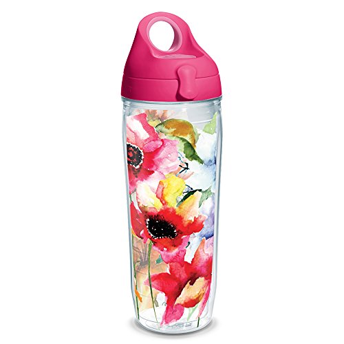 Tervis Watercolor Blooms Wrap Water Bottle with Pink Wb Lid, 24oz, Clear
