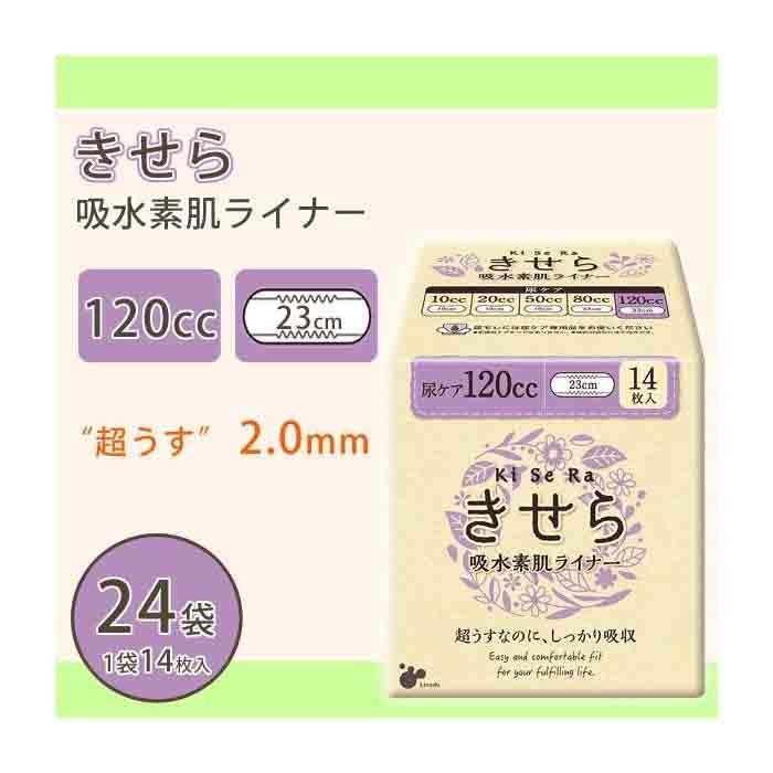 | 私らしくありたい、自然体で過ごしたい!イキイキとしたキレイな私であり続けたい!そんな私にそっと寄り添うシンプルな吸水ライナー「きせら」。超薄型の軽失禁ライナーで、つけていないような使い心地です。不意の尿モレも素早く吸収するので、薄くても心強い味方。肌にやさしい「やわらかさらさらシート」がお肌を健やかに保ちます。旅行などに便利な120ccタイプです。 |