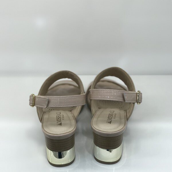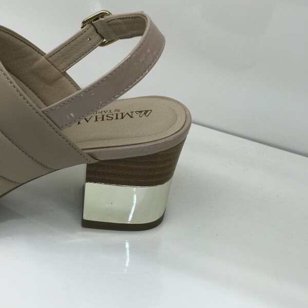 소재: 소가죽,양가죽굽: 6CM색상: 핑크베이지핑크가 섞인 베이지로 차분하면서 고급스러움을 주는 미들힐 샌들입니다.양가죽으로 발등을 부드럽게 감싸주어서 착화하셨을 때 보드라운 느낌을 받을 수 있습니다.앞쪽에 쿠션이 들어가 발바닥이 아프지않고 굽부분에 포인트로 뒤에서봐도, 앞에서봐도 예쁜 제품입니다.