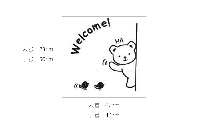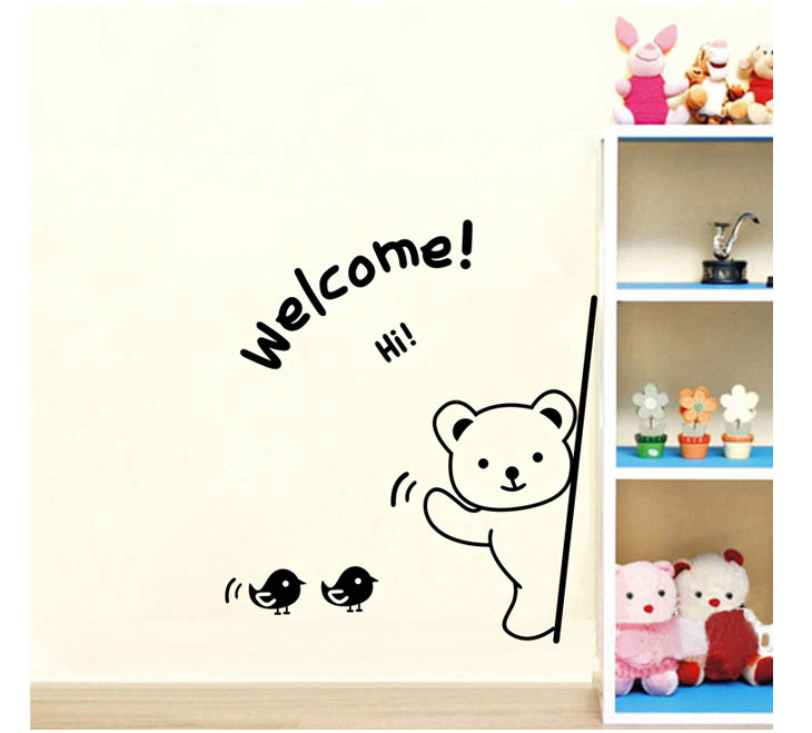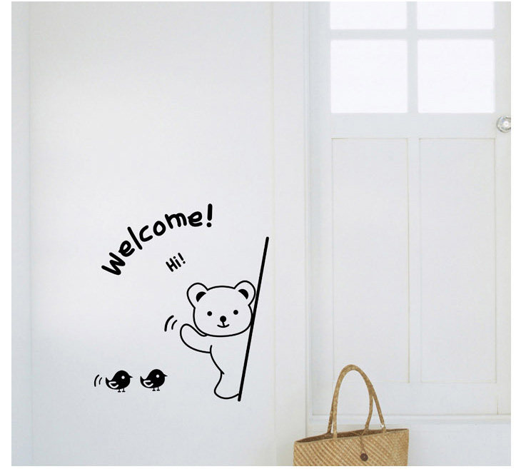 小熊欢迎光临墙贴卧室入户门卡通动物贴儿房门玻璃橱窗墙贴纸