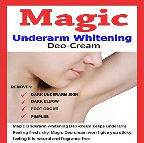 -. Feature : Magic Underarm Whitening Deo-Cream 30 grams - Pack of Two / Lightens dark underarm and elbows / Removes foot odor. / Helps remove pimple scars. / Results may vary from person to person.
