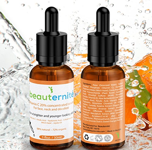 -. Title : Vitamin C Serum 20% with Hyaluronic Acid and Vit E 1 Ounce - Clear Skin Anti Aging Face Moisturizer, Eye Care, Facial Acne, Dark Spots, Circles, Scars, Wrinkle Treatment Skincare by Beauternite