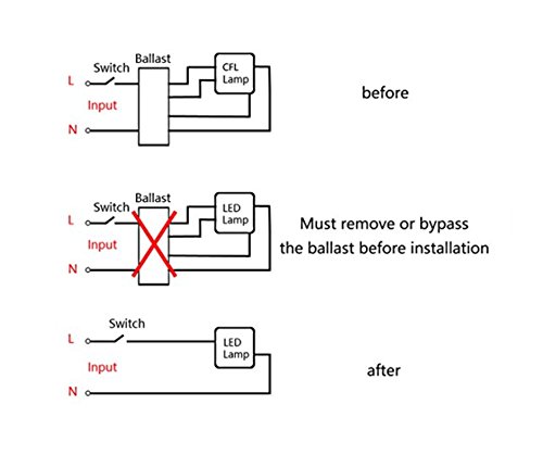 - Removing/Bypassing the ballast at the fixture is REQUIRED. Otherwise, the bulb WILL NOT work properly