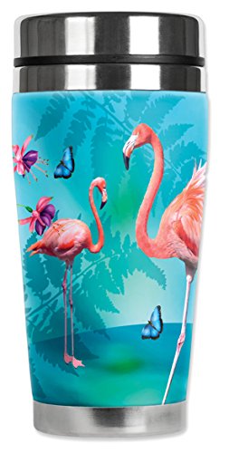 -. Title : Mugzie 724-MAX "Flamingo's & Butterflies" Stainless Steel Travel Mug with Insulated Wetsuit Cover, 20 oz, Black