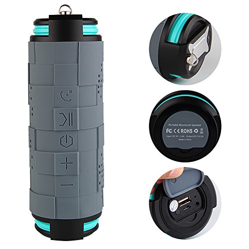 -. Feature : 【Bluetooth Version V4.0+EDR】Latest Advanced Bluetooth version V4.0+EDR with original CSR chipset, more power saving and faster transmission speed, with wireless connection distance up to 33 feet . / 【High Power Enhanced Bass 】Equipped with dual Powerful 5 watt speakers and dual passive radiators for bass extension, providing all-around stereo and hi-fi sound, far superior to normal speakers in the market. Built-in high sensitivity microphone with HD-Voice and Noise cancellation DSP technology delivers Crystal clear Hands-free calls. / 【NFC Technology】Near Field Communication (NFC) technology allows simple one-touch pairing. Instantly connect portable Bluetooth speaker with NFC-compatible devices for a quick and easy Bluetooth connection. / 【Waterproof &Dustproof & Shockproof】It resist any heavy rainy days, water splash and even the shooting of water cannon from any angle Waterproof, dustproof & shockproof. / 【Support Outdoor Sports】Specially Designed For Outdoor Sports,As an alternative, the 3.5mm Aux can be used as another option for sound output. Support TF card up to 128GB(not included)in MP3 or WMA format.
