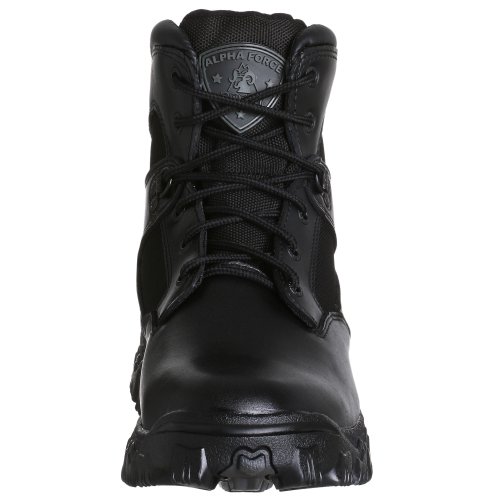 Studio : Rocky Publisher : Rocky Binding : Apparel Product Description Men's waterproof, U.S.A.-made Rocky 6" AlphaForce Boots! Just what you'd expect from the world's leader in rugged outdoor and occupational footwear. They're manufactured for durability, comfort and performance: Full-grain leather and lightweight 1,000-denier nylon; combination uppers for durability and breathability; Oil and slip resistant RigiTrac non-marking outsole; Terra Suspension footbed for added cushioning and support; Approx. 24 ozs. each. State Width: medium or wide (EE); and Size. Get yours now! Men's Rocky 6" AlphaForce Boots, Black 0