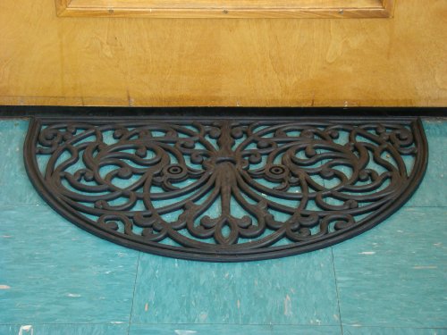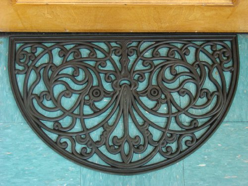 -. Binding : Lawn & Patio -. Brand : Kempf -. Color : Black -. EAN : 0743946168129 -. Feature : Attractively designed doormat brings elegance to the doorstep / Open scroll work effective at trapping dirt and debris, while allowing water to drain / Intricate pattern resembles wrought-iron scroll work / Tough rubber ensures longevity of mat, great for all seasons / Rubber construction prevents slipping -. Label : William F. Kempf & Son Inc. -. Manufacturer : William F. Kempf & Son Inc. -. Model : 1682 -. MPN : 1681 -. PackageQuantity : 1 -. PartNumber : 1681 -. ProductGroup : Lawn & Patio -. ProductTypeName : OUTDOOR_LIVING -. Publisher : William F. Kempf & Son Inc. -. Size : 18" X 30" X 0.5" -. Studio : William F. Kempf & Son Inc. -. Title : Kempf Half Moon Shaped Rubber Scroll Doormat, 18 by 30 by 0.5-Inch -. UPC : 743946168129