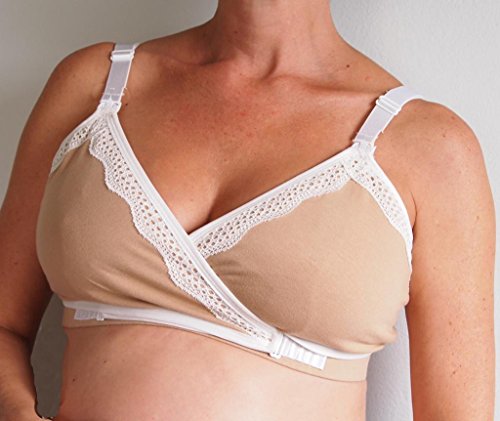 - Feature : All in One nursing and hands-free pumping bra that can be worn comfortably all day long - no more changing clothes and bras, for beautiful and efficient multitasking. / A patent pending combination of 2 panels for support of your breasts and the pump flanges. Top cotton layer connects to one of 5 settings to tighten when drained or loosen when engorged. Lower nylon lycra panel has tight opening for the flanges and is quick drying. Pull aside for nursing, exposes more of the breast. / Both sides are independent, to allow for simultaneous nursing on one side and hands free pumping on the other. Adjustable back straps can be crossed for racer back option. Back closure has 4Ó of hook and eye closure to expand and shrink with mom pre and post partum. / Figure flattering and sexy - no more uni-boob. / Sized XS-XL, fits from 32A-42G. Please use our sizing chart and measuring guidelines to ensure you select the correct size
