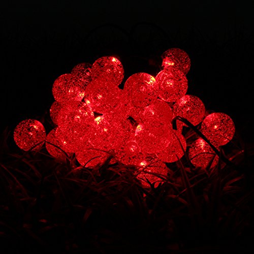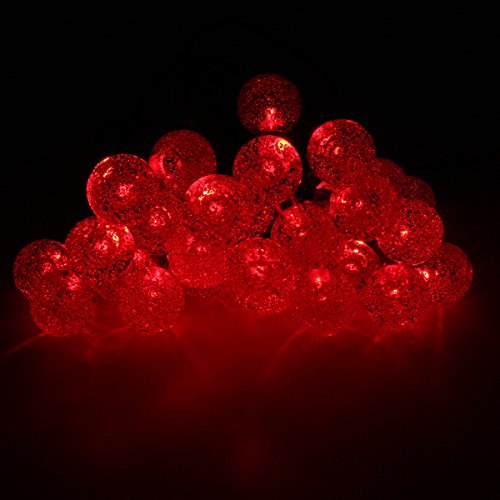 Solar String Lights, GLISTENY Fairy Light Power 30 LED 6M Ball Globe Strip Bubble For Decorative Christmas Holiday Outdoor Party Red light