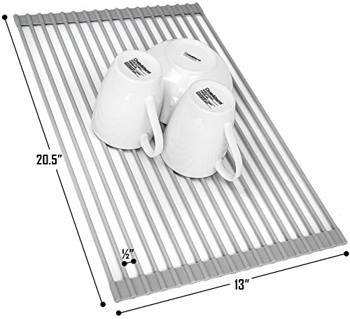 Sorbus Roll-Up Dish Drying Rack | Over the Sink Drying Mat,- Multipurpose Dish Drainer - Fruits And Vegtable Rinser - Durable Silicone Covered Stainless Steel Large 20-1/2"L x 12-3/4"W (Warm Gray)
