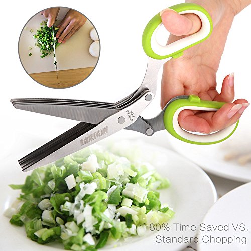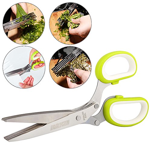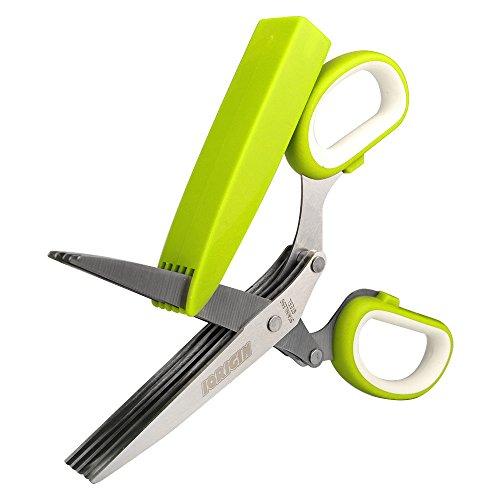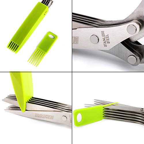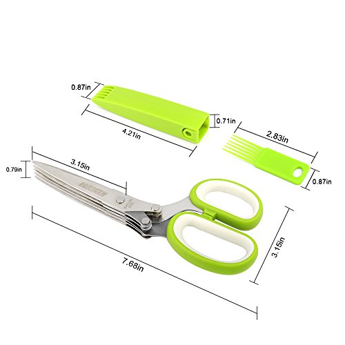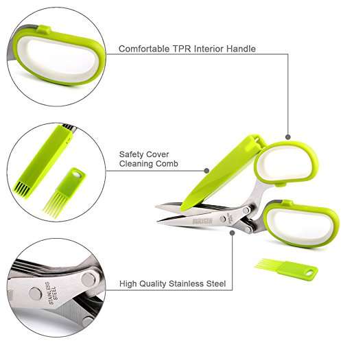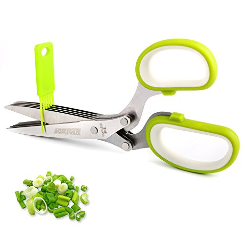 IORIGIN Herb Scissors with 5 Blades Stainless Steel Multipurpose Kitchen Shears with Cover and Cleaning Comb Soft Rubber Handle Scissors