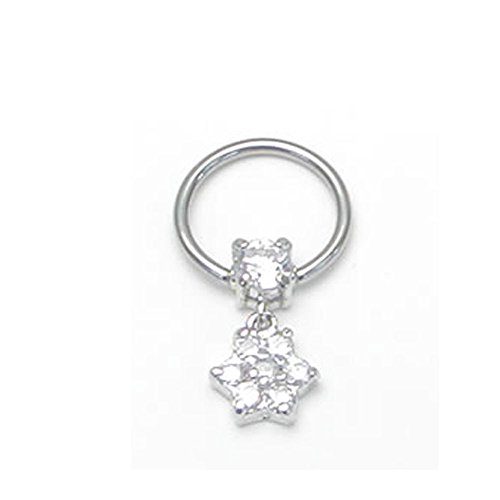 -. Feature : 商品名:キャプティブビーズリング フラワーダングル / サイズ:ゲージ16G 内径10mm ジュエル径4mm チャーム8×8mm / 素材:316Lサージカルステンレス / リング :シルバー / ジュエルボール:ダイヤモンドクリア