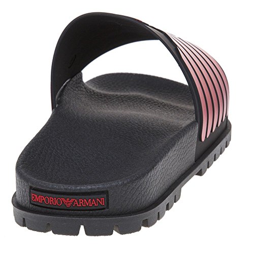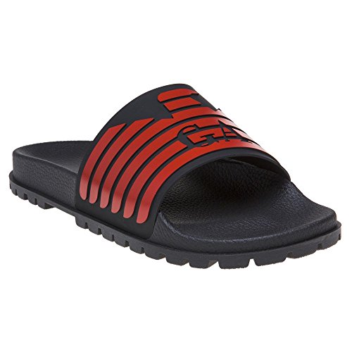 Product Description The Eagle Logo slides from Emporio Armani are luxury summer styling, featuring a durable lug style outsole and classic print to the upper for a slick finish. 0