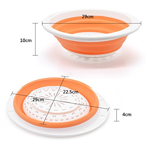 Collapsible Colander,Over the Sink 12'' Plastic Kitchen Strainer,Drain Basket,Kitchen Gadget Folding Fruit Basin Vegetable Basket Washing Container with Mesh for Draining Pasta,Noodles,Food (Orange)