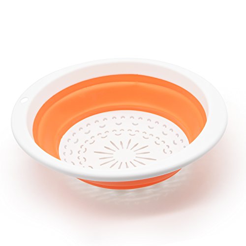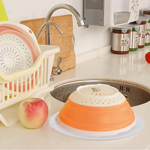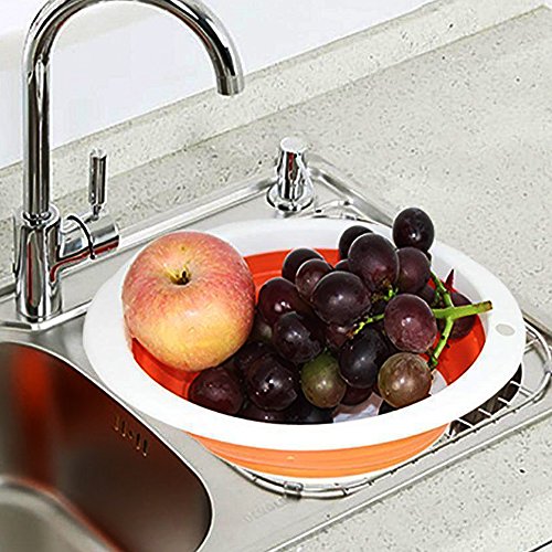 PROTECTS FOOD FROM BACTERIA: The collapsible strainer is designed in a way that it will hold up from the bottom of the sink, so the bacteria from the sink don't touch what you are washing