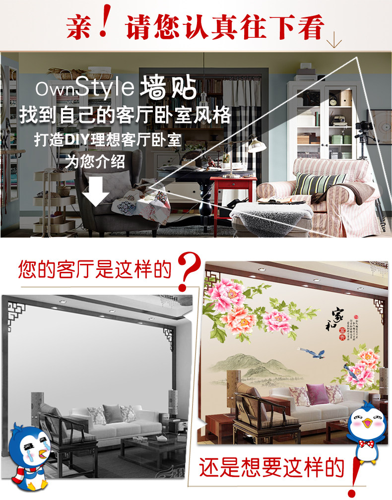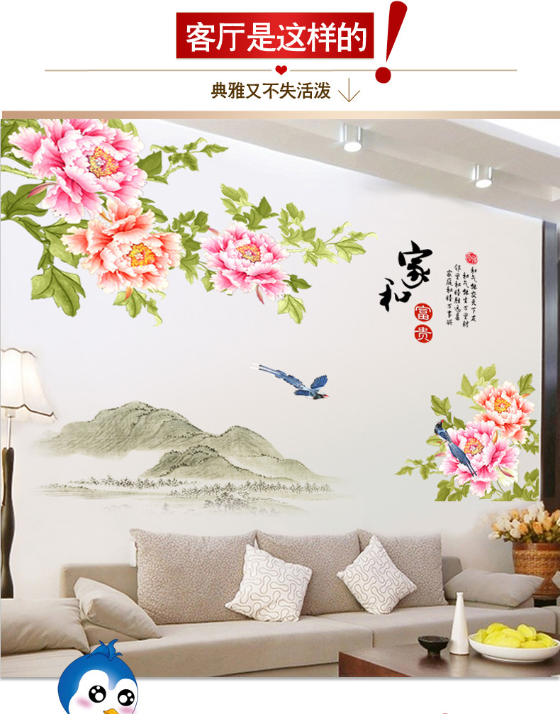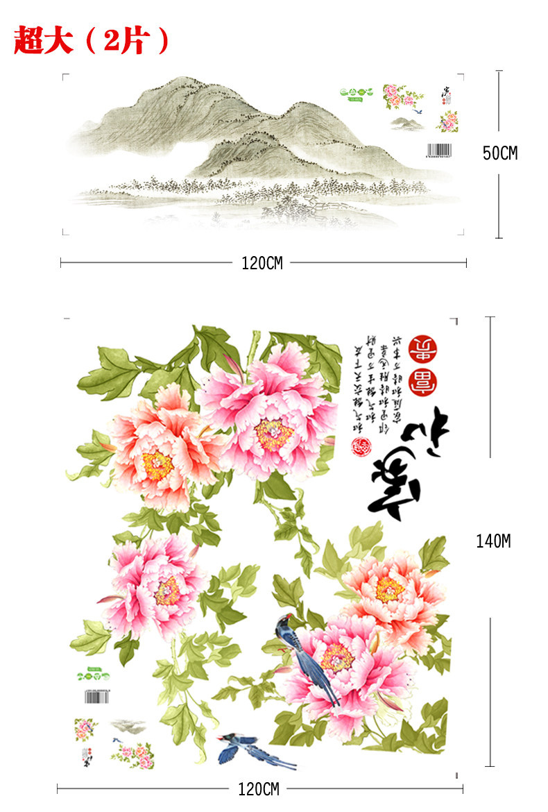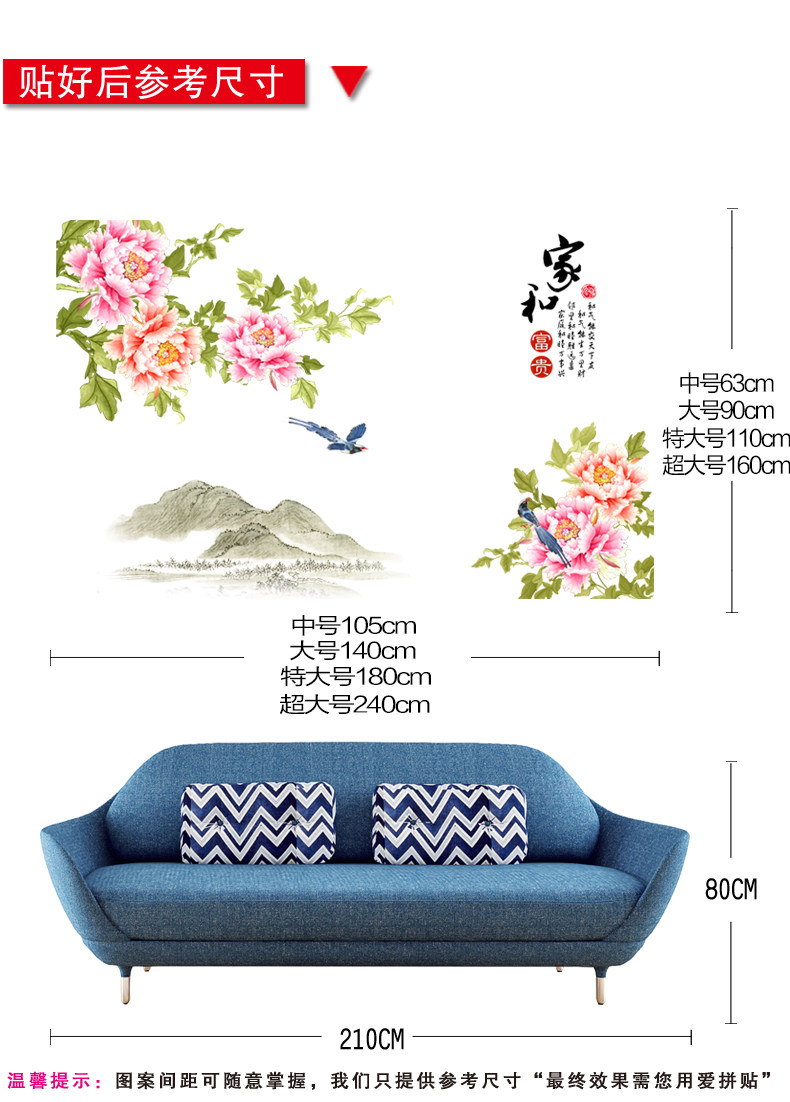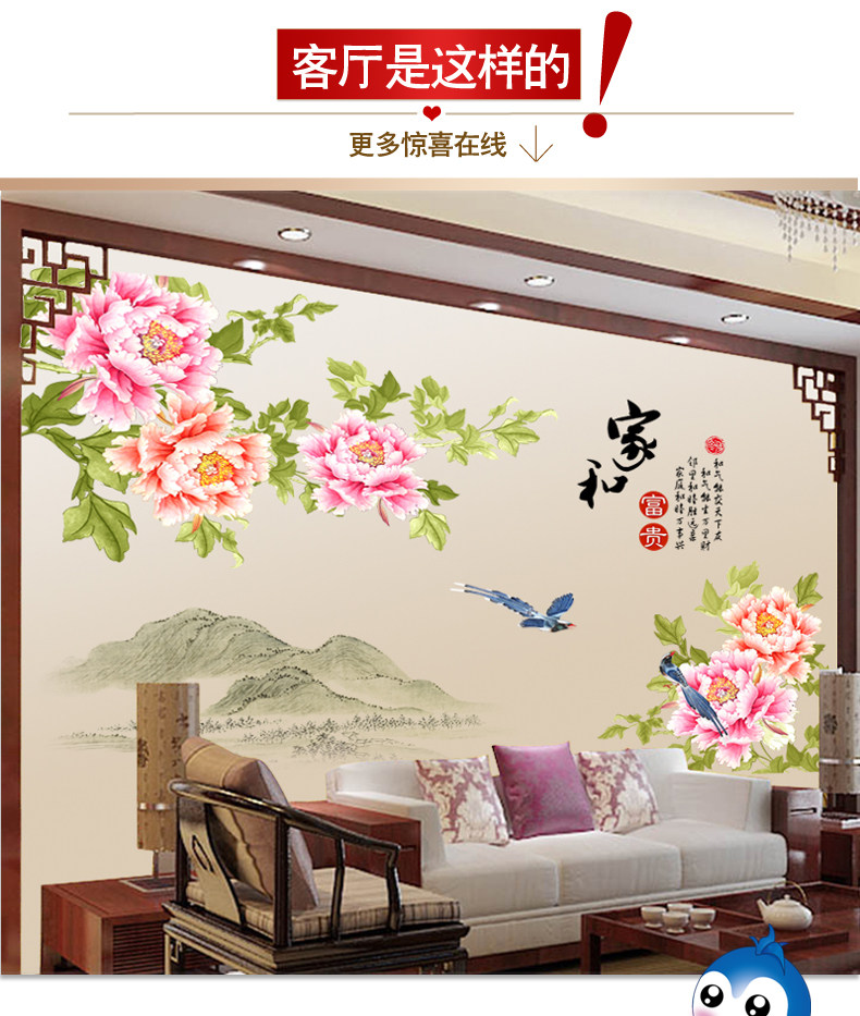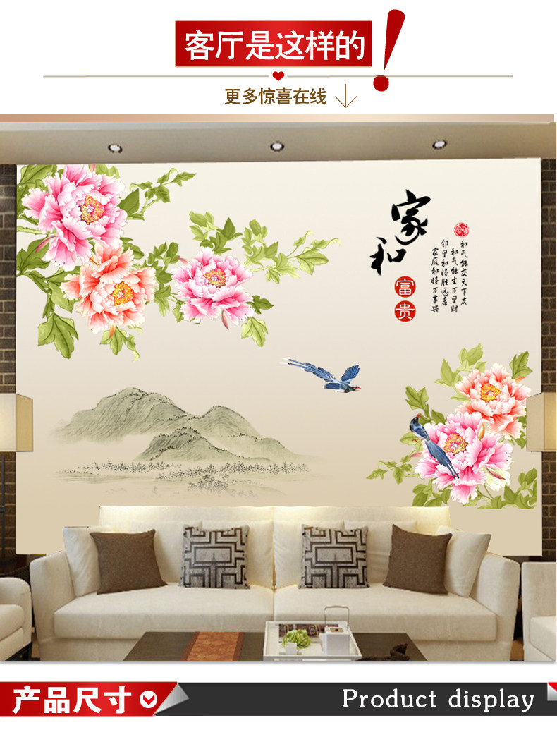 中国风家和富贵墙贴纸 客厅电视背景墙超大花朵贴纸床头创意装饰