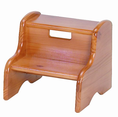 Tenderfoot Kids Wooden Step Stool Great booster step stool for your little one. This two step up stool will help them reach what little arms just can't quite get. Solid wood construction. All kids love to feel bigger. Help to encourage a little independence with mom or dad's help. A cut out carry handle allows you to move where you want with ease. Offered in different finish choices for your decor preference due to availability. Little Colorado is a Green Company All finishes are water-based, low-VOC made by Sherwin Williams and other American manufacturers. Wood raw materials come from environmentally responsible suppliers. MDF used is manufactured by Plum Creek, and is certified green, CARB-compliant, and low-formaldehyde. All packing insulation is 100% post-consumer recycled. All shipping cartons are either 100% post-consumer recycled or are made of recycled cardboard. About Little Colorado This item is made by Little Colorado. Begun in 1987, Little Colorado, Inc creates solid wood, hand-crafted children's furniture. It's a family-owned business that takes pride in building products that are classic, stylish and an excellent value. All Little Colorado products are proudly made in the U.S.A. with lead-free paints and materials. With a look that's very expensive but a price that is not, Little Colorado products bring quality and affordability to your little one's room. Dimensions: 13L x 12W x 11H inches. Durable wood construction. Several finish options. Carry handle. Safely lets kids reach just a bit higher. Two step up stool. Encourages independence.Feature