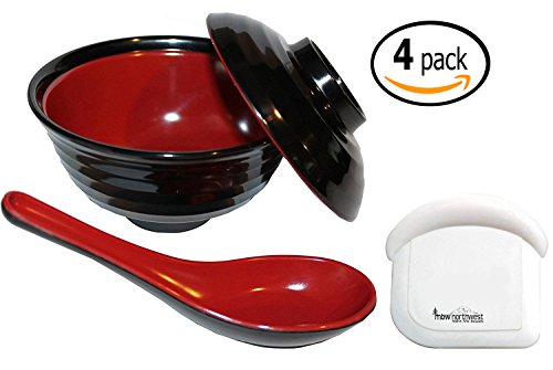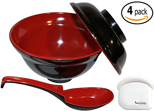 Set of 2 - Each includes one Japanese Rice / Soup Bowl and Lid with a matching hook spoon