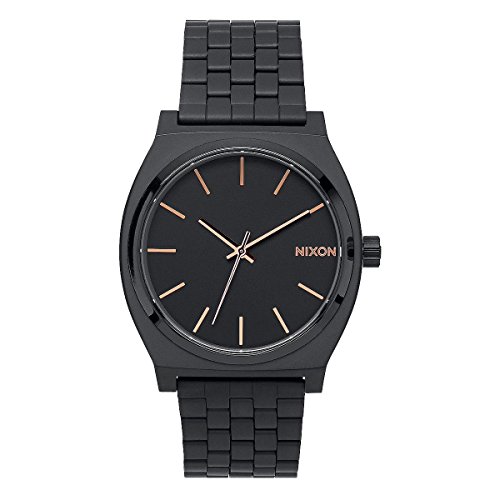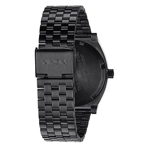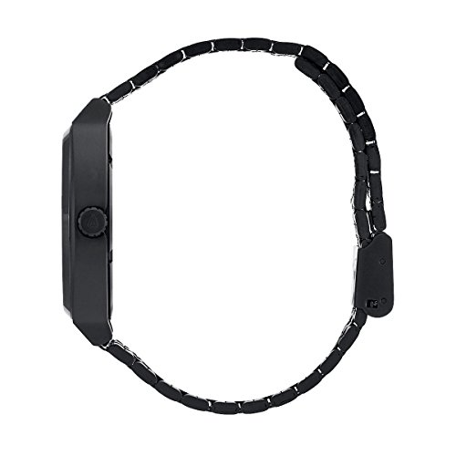 Product Description A minimalist Nixon watch with a black dial and a brushed finish. Japanese quartz movement with a 3-hand design. Logo lettering at the 3 position. 5-link band. 0