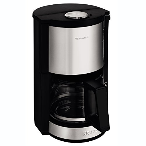 Krups KM321 Proaroma Plus Glas-Kaffeemaschine, 10 Tassen, 1100 W, modernes Design, schwarz mit Edelstahlapplikationen