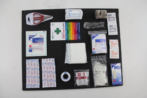 ReleaseDate : 2013-04-08 Studio : Nissan Publisher : Nissan Binding : Automotive Product Description Play it safe with a first-aid kit with Velcro backing so it can secure to any carpeted surface. Basic first aid supplies in a zippered vinyl pouch. Contents include: latex free gloves, adhesive bandages, adhesive tape, sterile gauze, elastic bandage, cleansing towelettes, large grip super scissors, first aid cream, tweezers/magnifier and first aid instruction booklet. 0