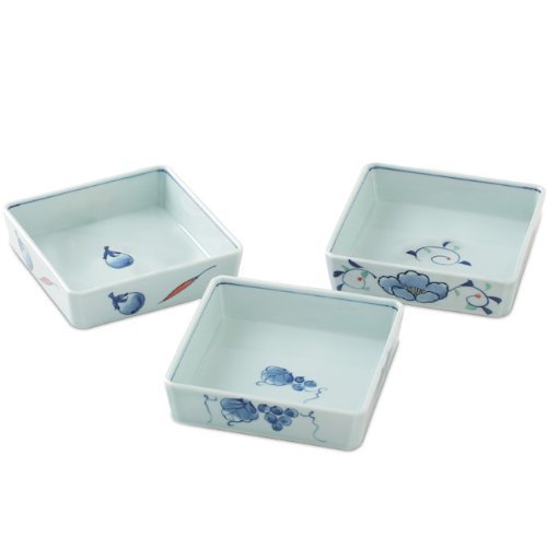 -. Title : 食器 : 有田焼 優雅な絵付け 絵変り 三段重ね鉢 Japanese Bowl x3pcs set Porcelain/Size(cm) 16x16x4/No:185093