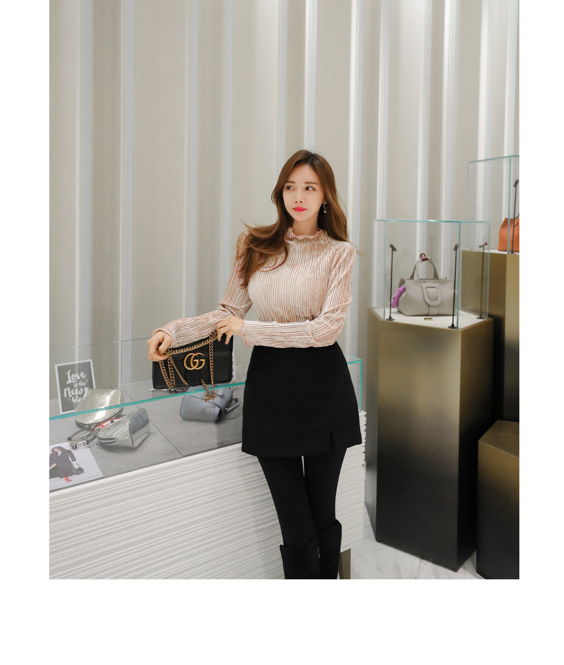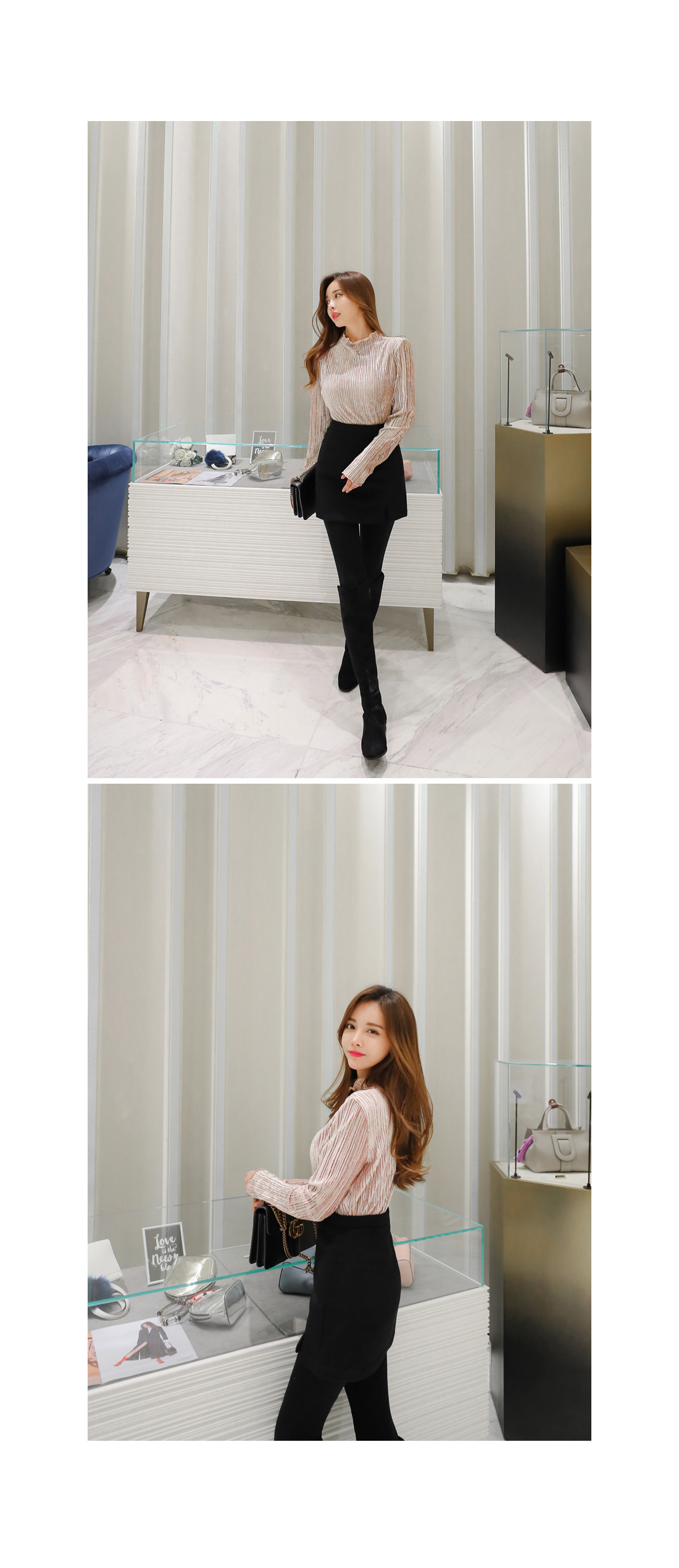 모델처럼 스커트와 레이어드하여 걸리쉬 하게 연출해도 좋으며